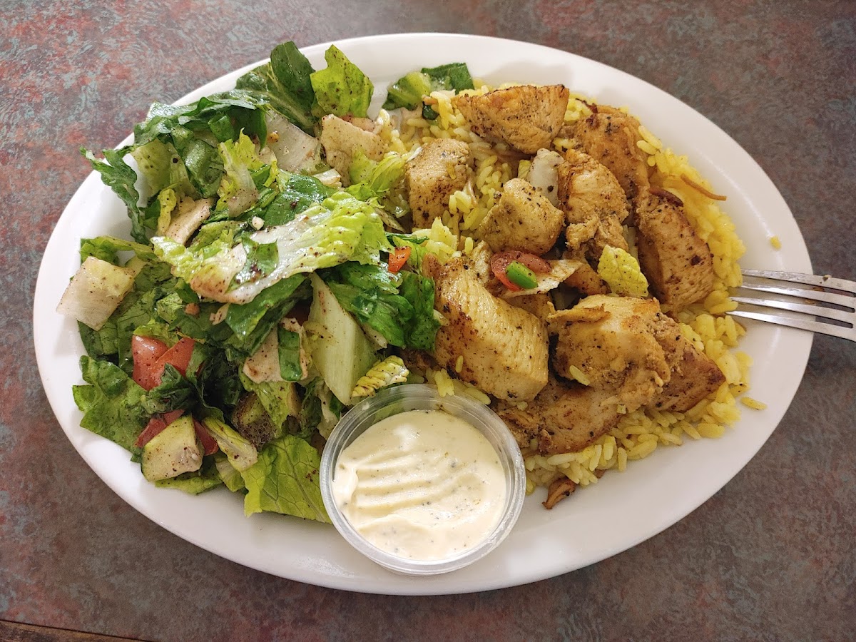The menu is straightforward but thoughtfully put together, covering the essentials of Mediterranean food without overwhelming you. You’ll find grilled meats, wraps, rice plates, fresh salads, and house-made sauces that actually taste homemade. When I ordered the chicken shawarma plate, I watched the staff slice the meat straight from the rotating spit, a process that locks in moisture while creating those crispy edges everyone loves. That method isn’t just tradition; food science backs it up. Studies from the Journal of Food Science show that vertical rotisserie cooking helps retain up to 20 percent more moisture compared to flat grilling, which explains the tenderness on the plate.
